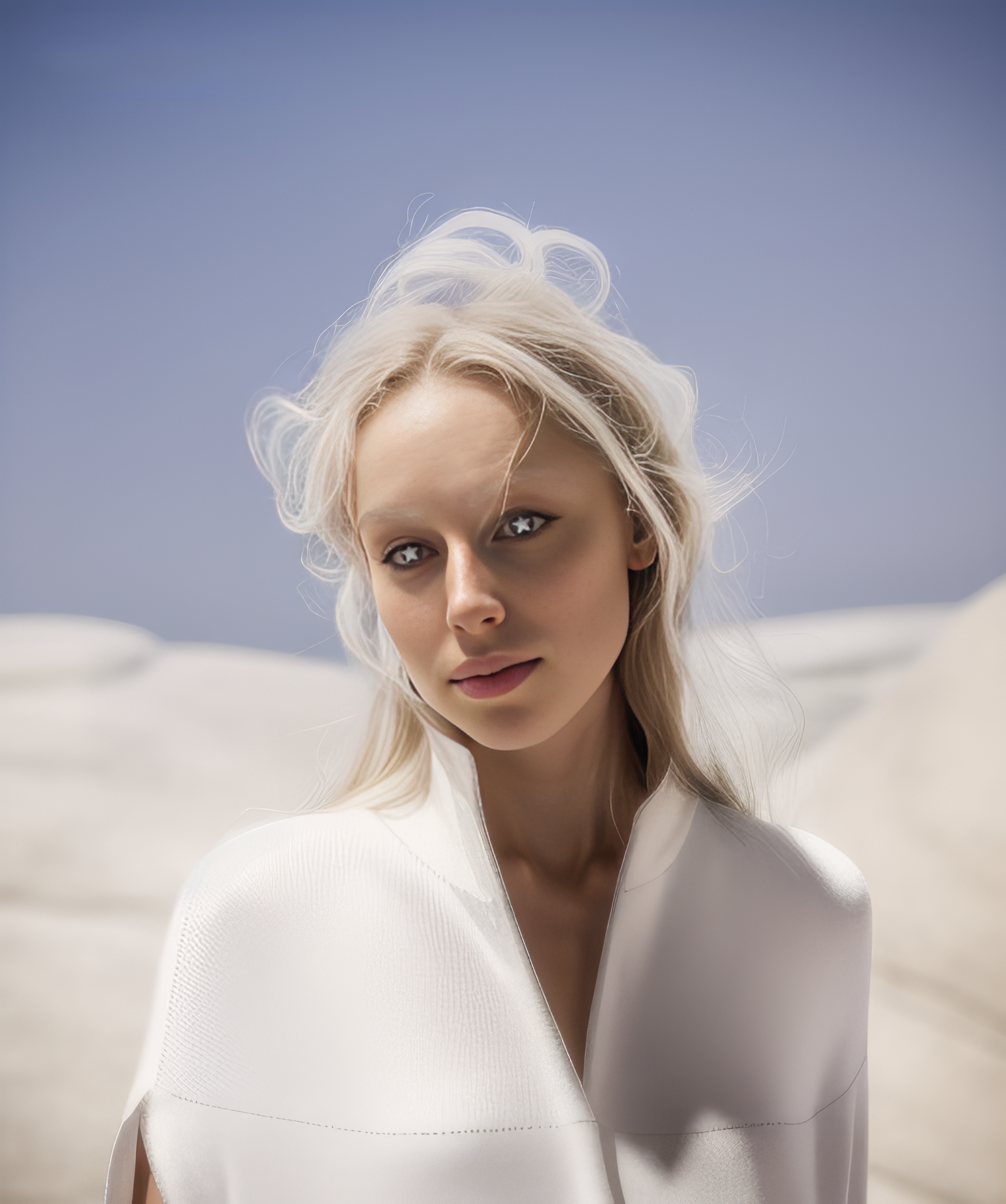 The content was created with the Stable Diffusion AI by training an textual embedding on 100 images of myself and then prompt engineering to achieve the photorealistic and recognisable images of this character that looks like me but blonde. Then I used Photoshop to edit the eyebrows to be bleached and added star-shaped pupils as that is the key characteristic of Nova Luna.