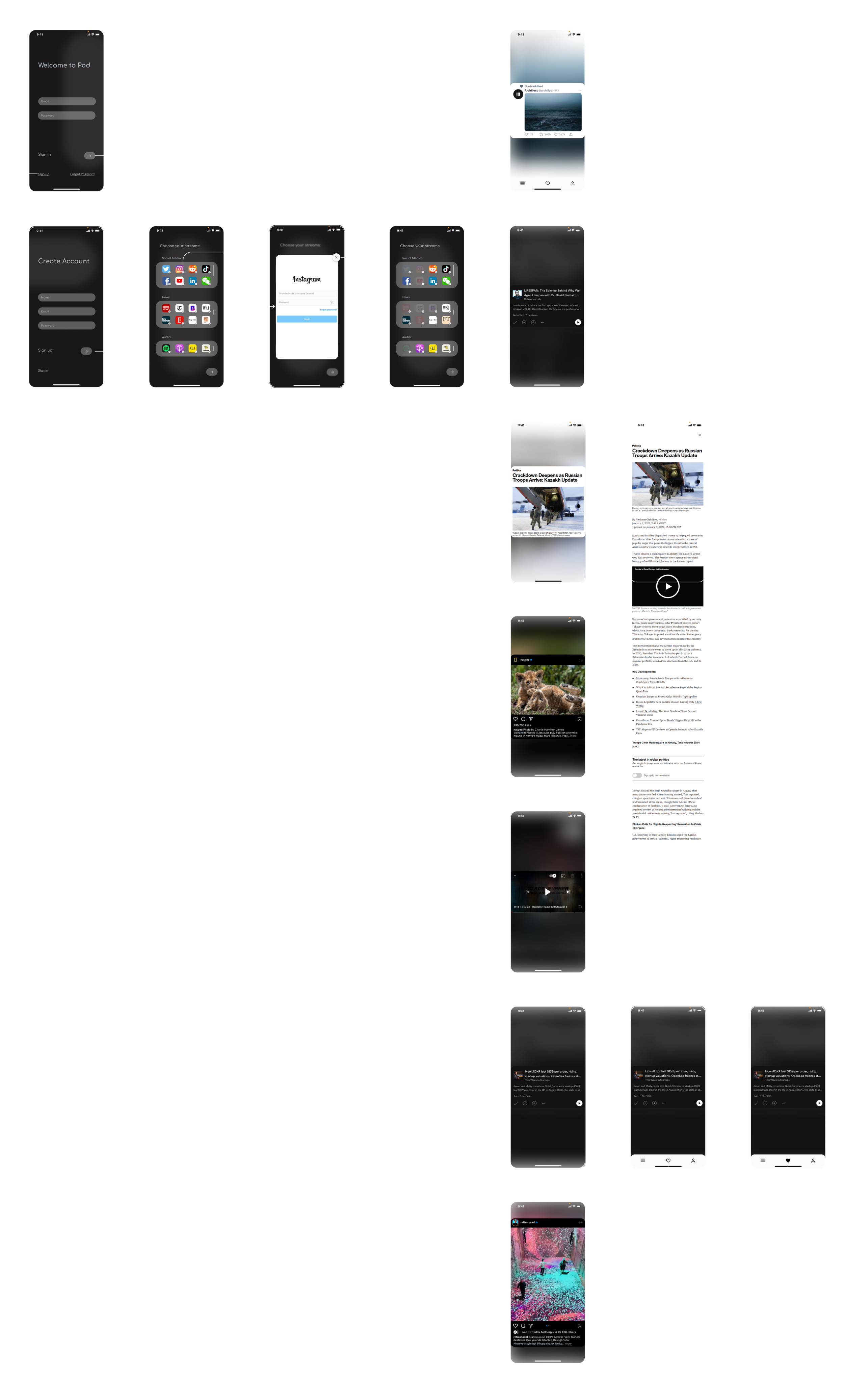 Pod is a result of my work during the Product Management course at General Assembly. There I practised all product pipeline stages, including customer interviews, market analysis, wireframing, road mapping, MVP planning and feature prioritization, etc. My presentation was voted top second in the cohort, inspiring me to prototype the app in more detail and create the visual walk-through above.