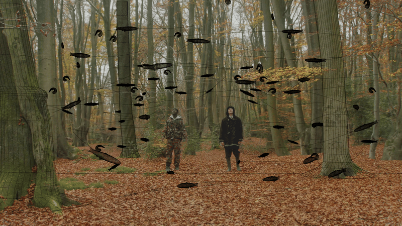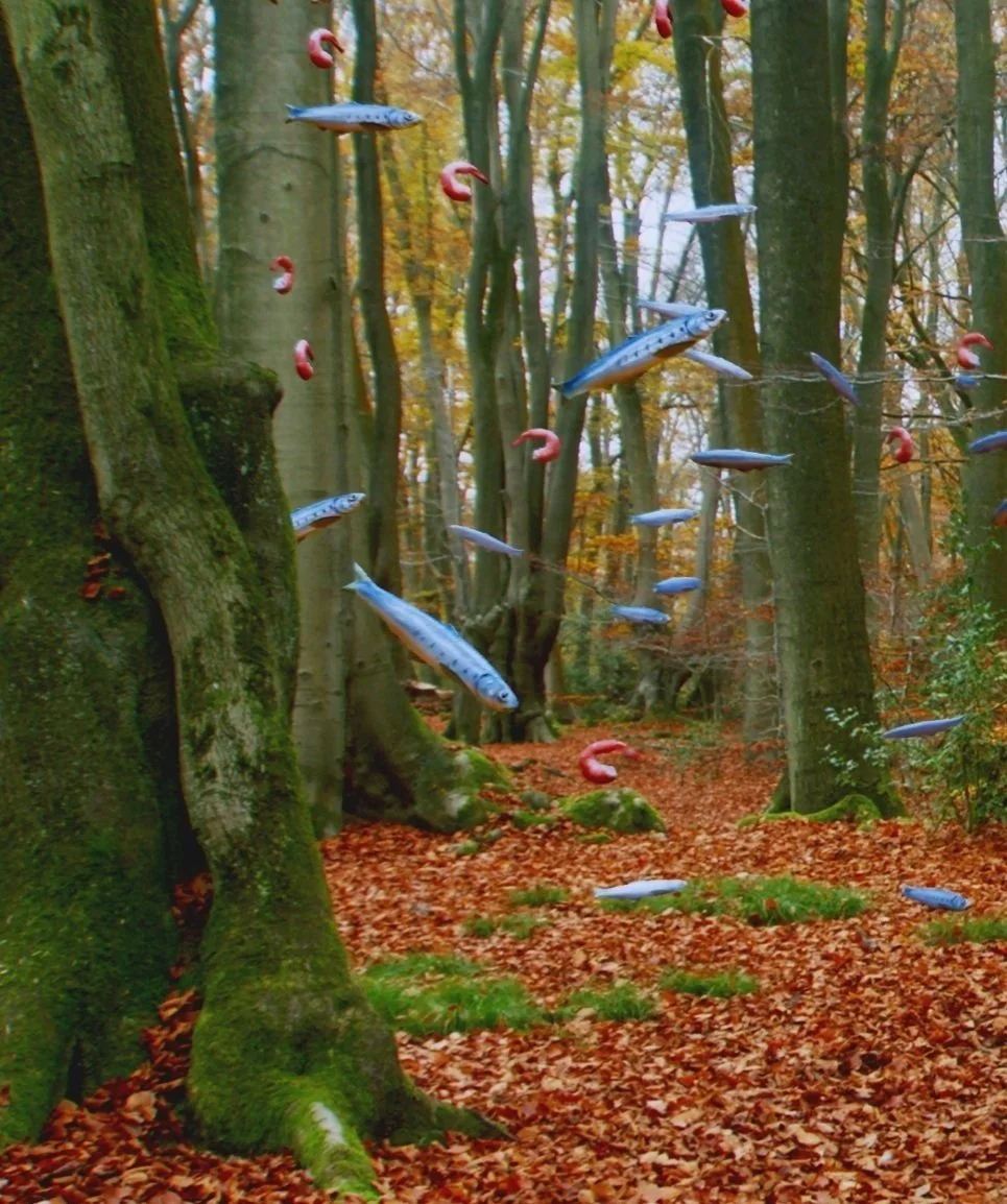 Reality bends in Seafood Salad in France by GEE LEE, ayrtn, and honey. What starts as a forest stroll turns surreal as fish and prawns drift through the air, floating like a fever dream.